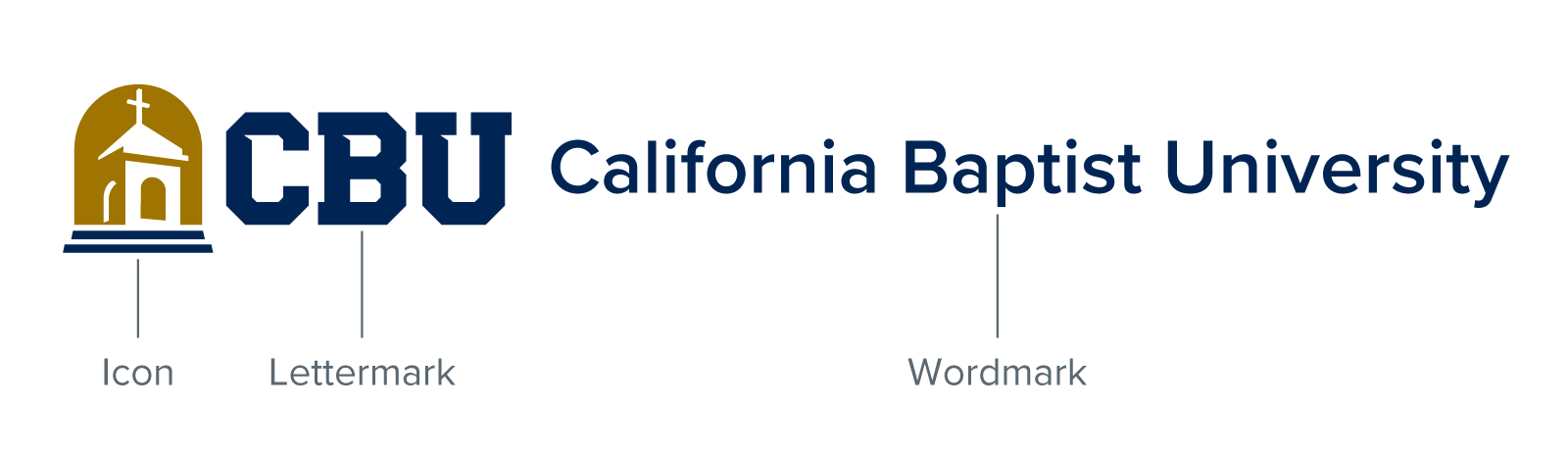 The wordmark proudly proclaims the full name of our university. If the bell tower icon and the CBU lettermark combination are insufficient for proper brand recognition / identification – including the wordmark makes it overtly clear we are the one and only California Baptist University.